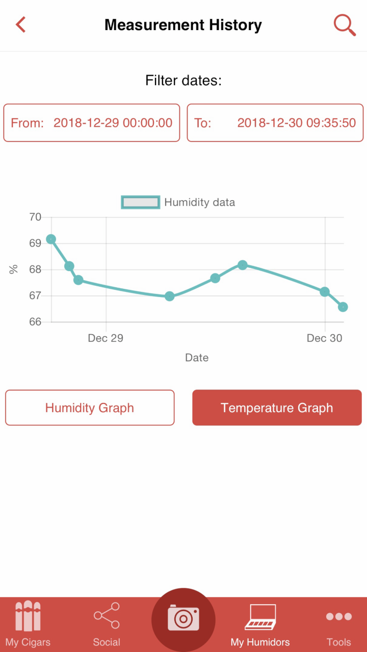 Once I finally had that all connected I opened up the Cigar Scanner app which, until getting this, I had not used before. The app itself is pretty well laid out, there’s a social side to it for posting photos and giving ratings of what you’re smoking, a tools section with a decent amount of information, a my humidor section which is where you will find the readouts from the hydrometer/thermometer as well as adding cigars to your collection so you know what you have on hand. Don’t want to type in all that info for each cigar you have? Not a problem, just take a photo of the cigar and let the app figure out what you have. But back to the hydrometer.